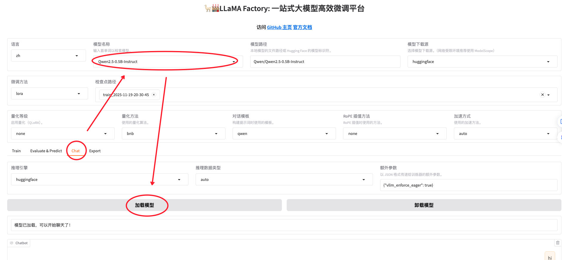 Qwen/Qwen2.5-0.5B-Instruct,这次加载这个模型(忽略途中的lora的检查点路径哈)