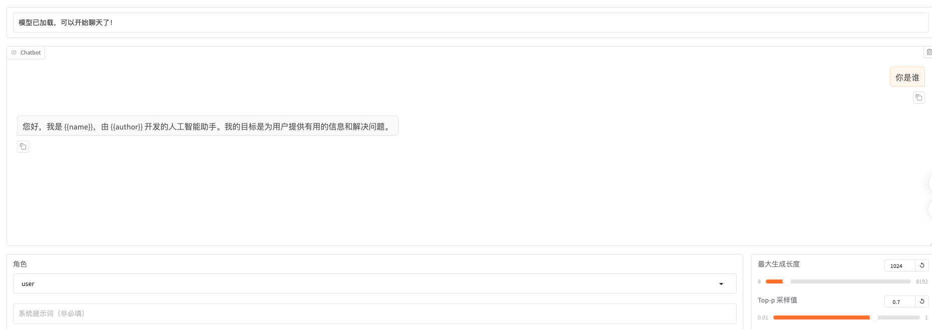 体验:训练后在chat页面,选择lora模型,询问你是谁,和我们的训练集结果一样,和基模的回答不一样了,训练生效。