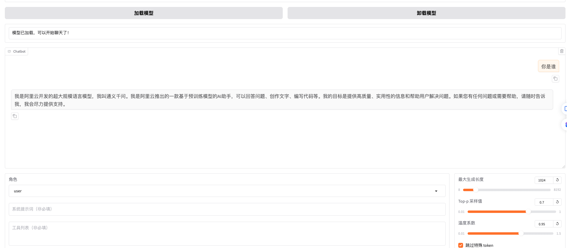 然后重新加载看看是不是咱们lora好的,做个问答试试